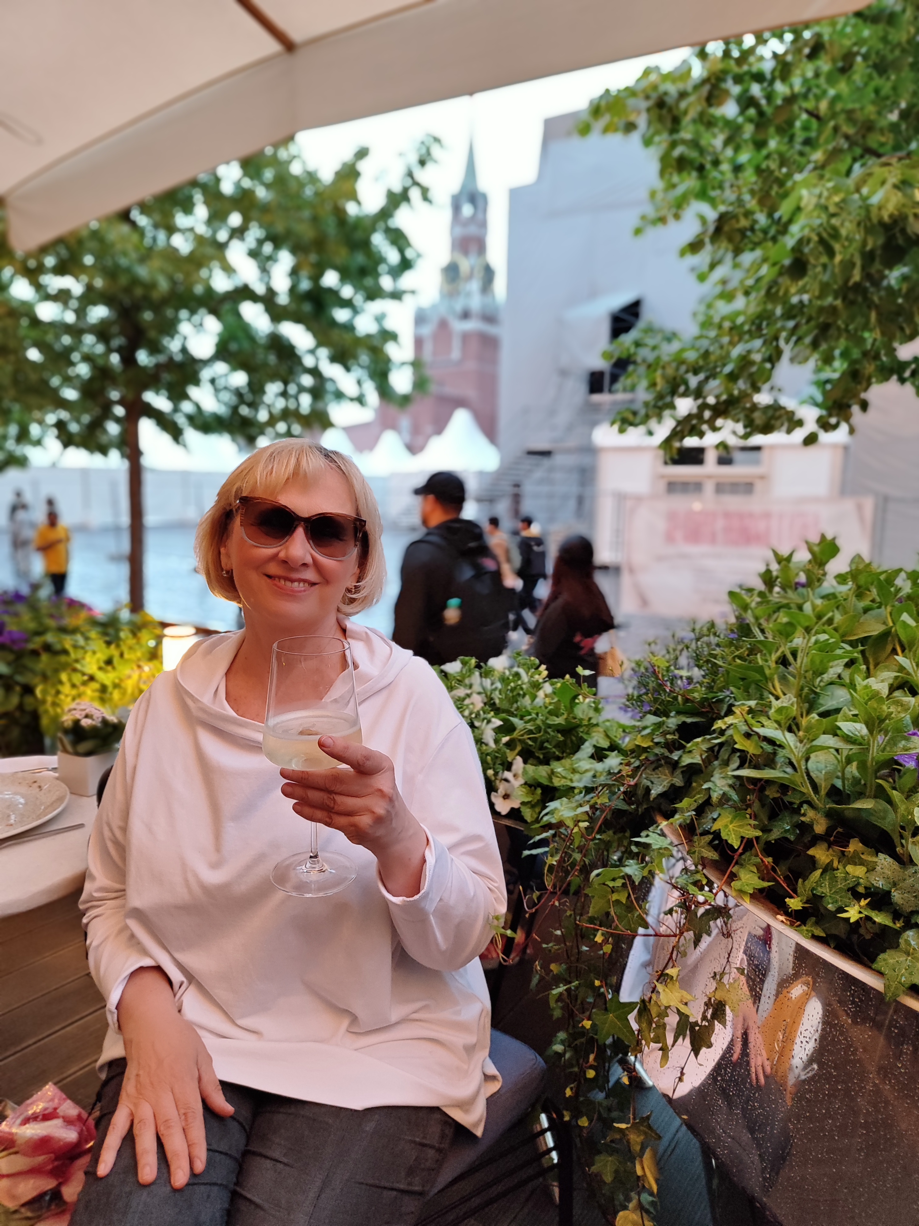 И встретила 24 мая по Красноярску на Красной Площади в Bosco Cafe ГУМа . Тут тебе и любимая Красная Площадь и бой курантов , вкусное шампанское и самое главное друг Аня!