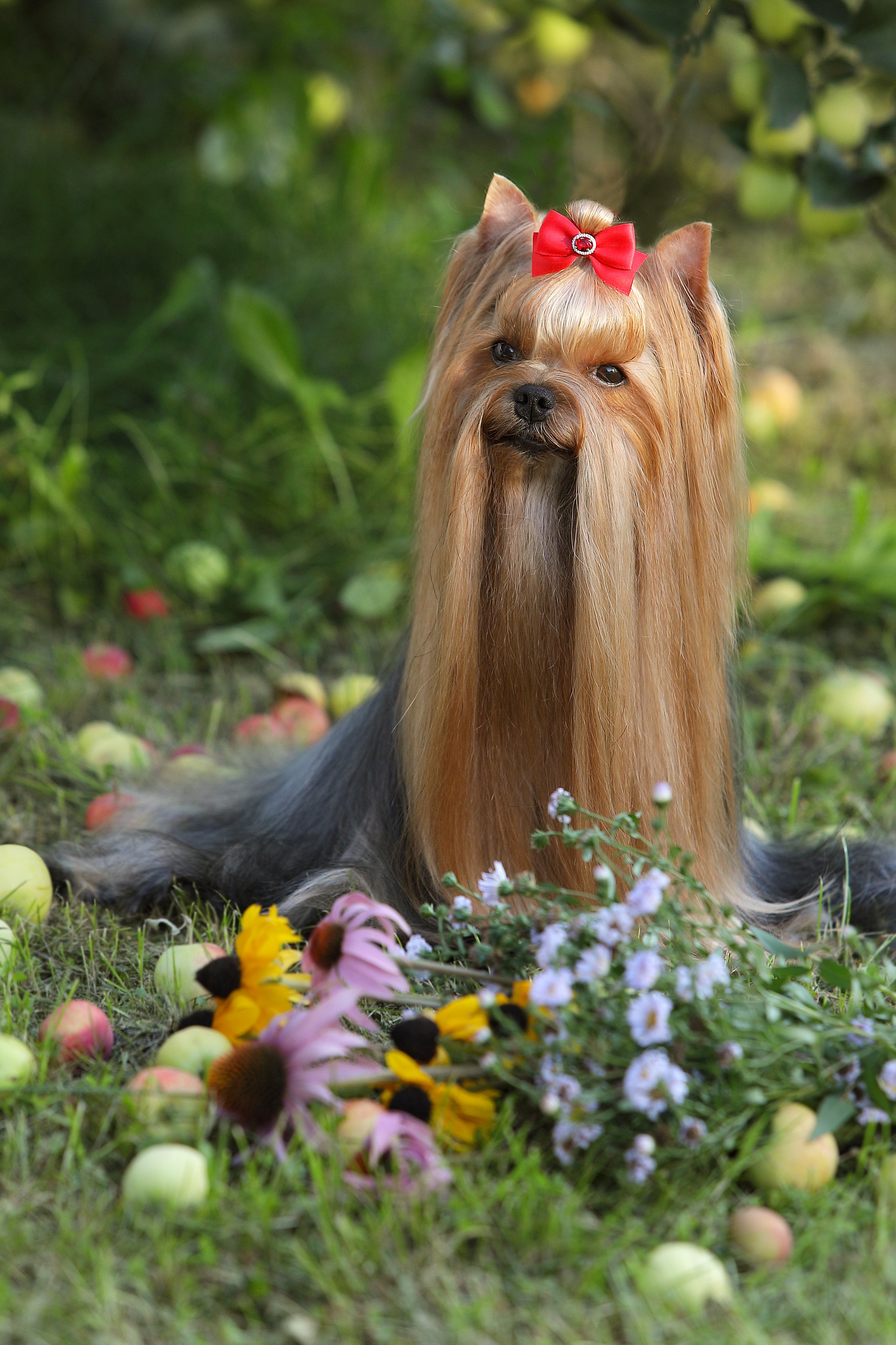 В этом году на месте моих цветов выжили лишь несколько кустиков и мои фигурки йорков . Решили прикупить им в компанию Медведя , да тяжелого , чтоб на сдвинул ! Все равно все раскапывал все лето ... На следующий год решила в другом месте себе цветник сделать и забор высокий .