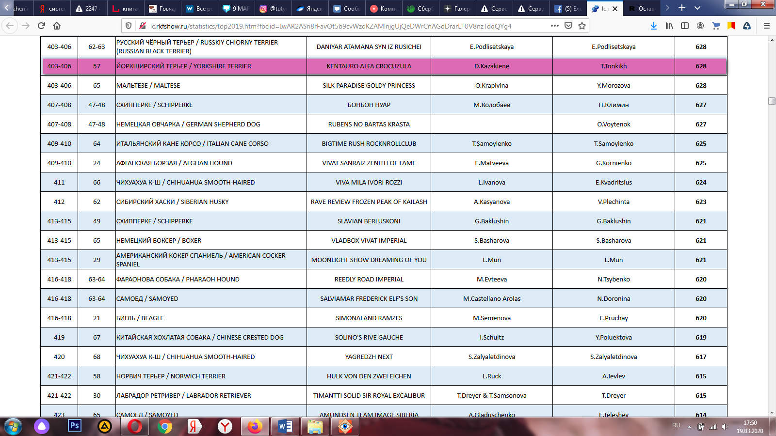По результатами рейтинга «Топ шоу-собака РКФ» http://lc.rkfshow.ru/statistics/top2019.htm