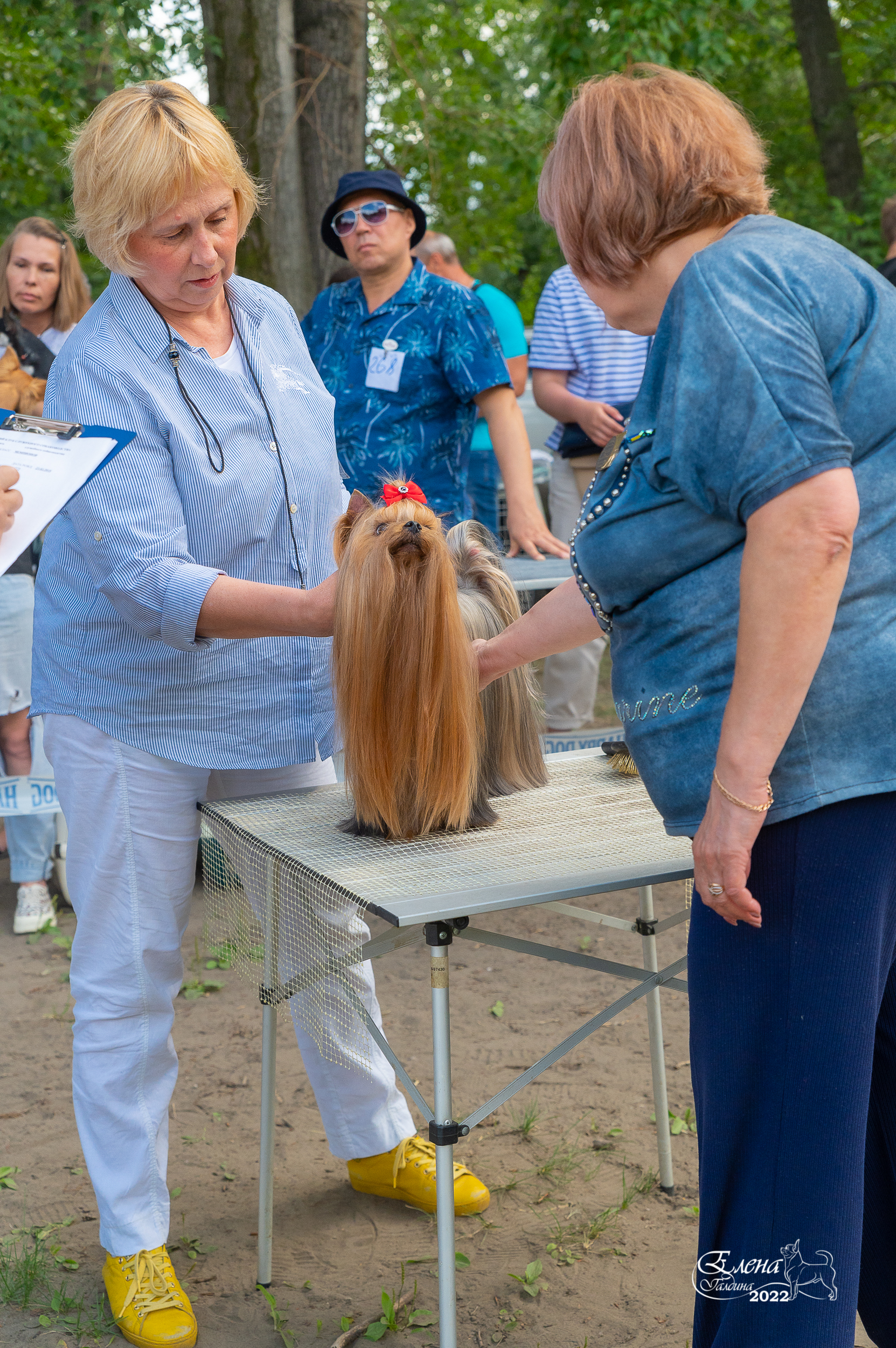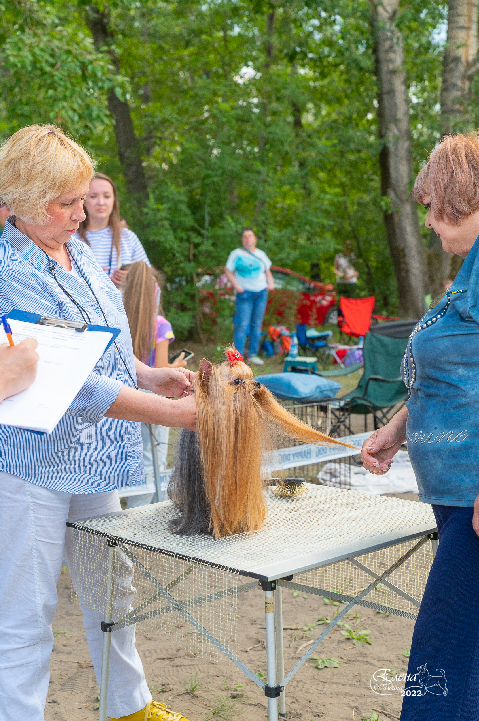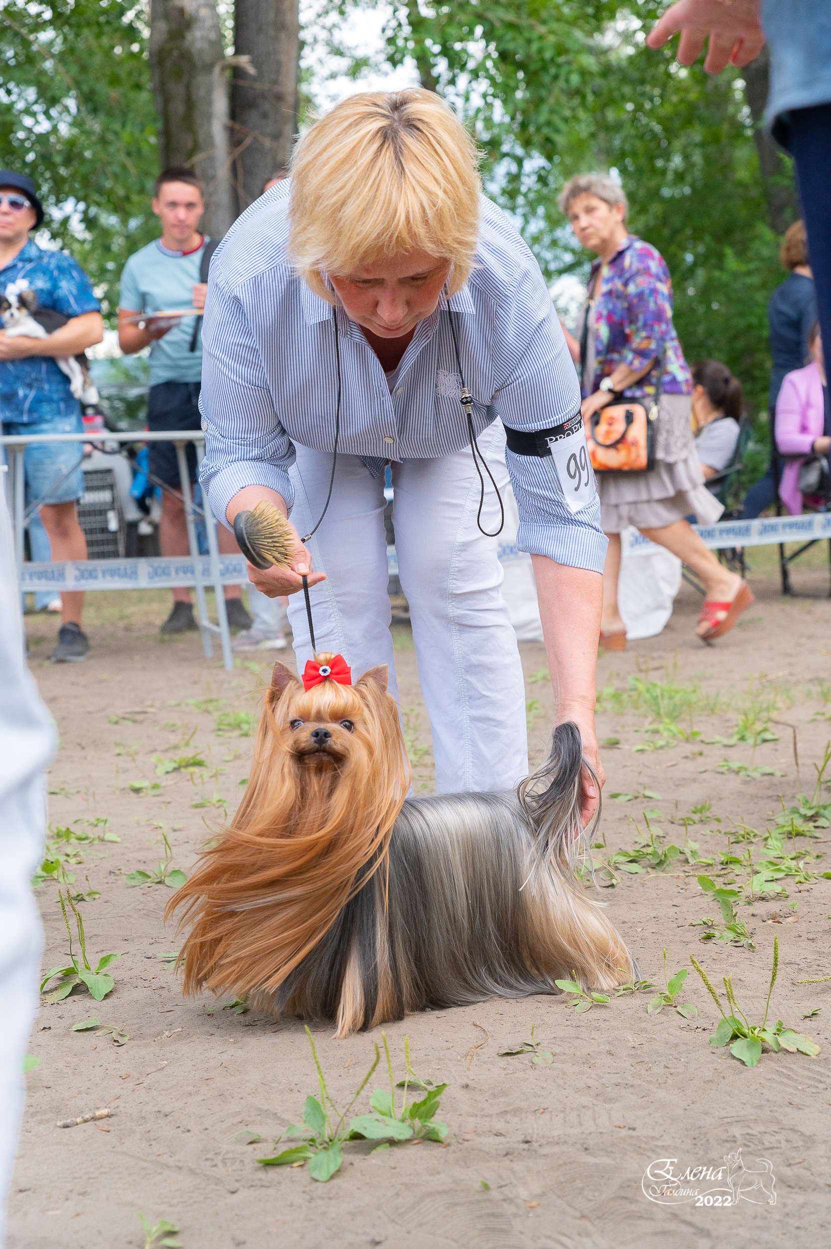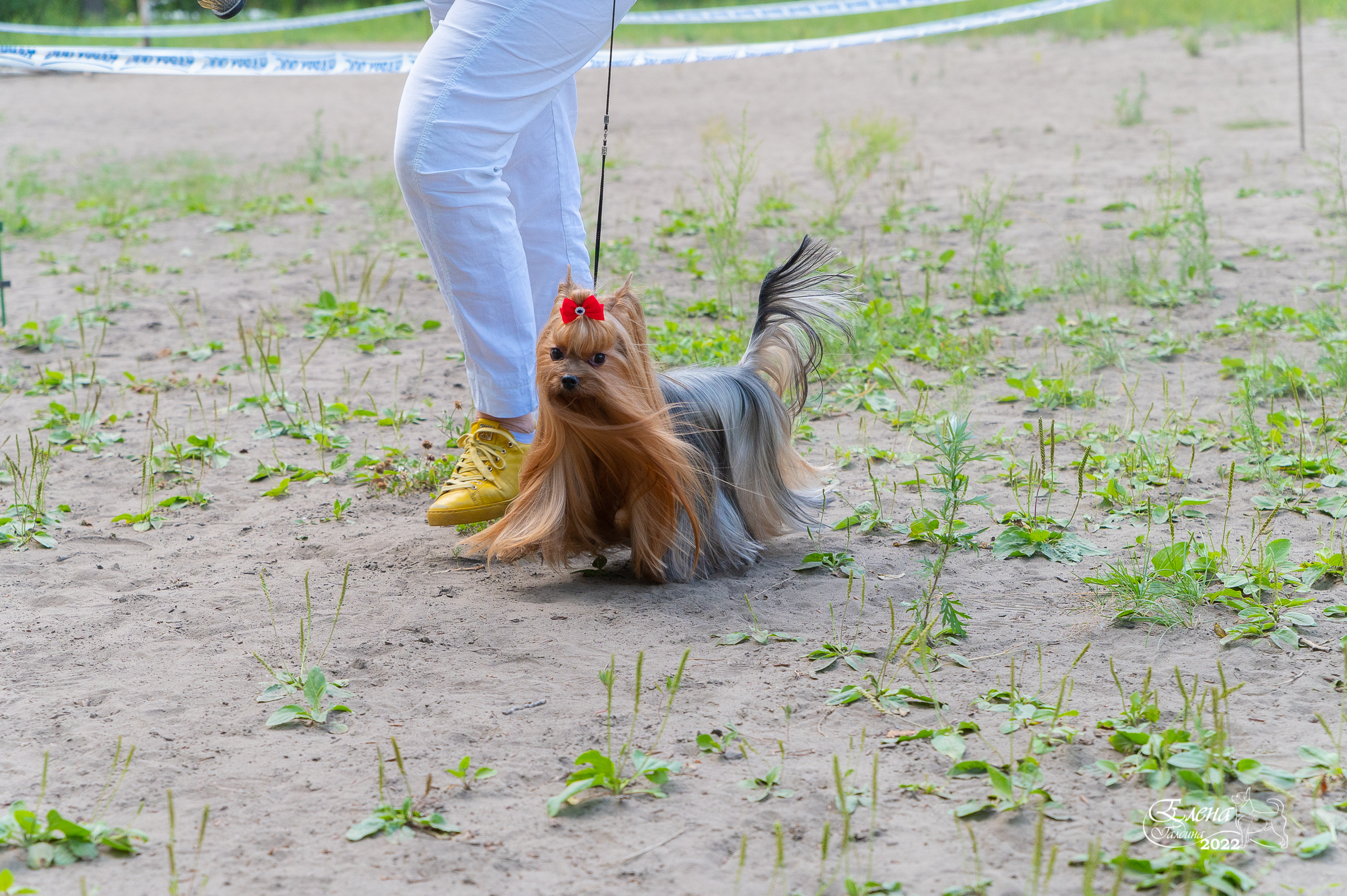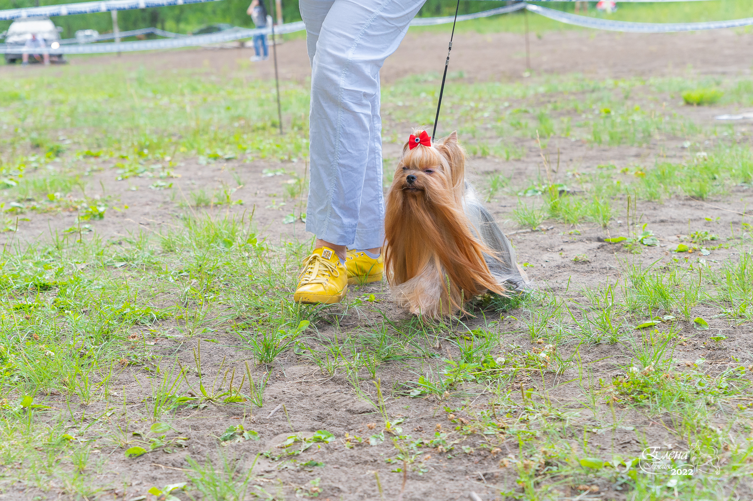 Если честно , то не очень я люблю выставки на улице из-за непредсказуемости погоды . Ведь у йорка шерсть - это и красота , и породность , и грация! А когда по траве некошеной , да по пыли-грязи , да еще сверху дождик поливает , да с ветром :evil: то какая там грация.