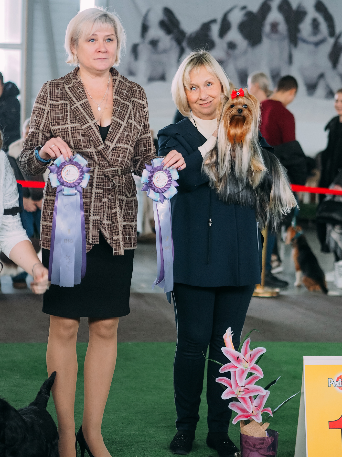Выиграл породу и представлял йоркширских терьеров на БЕСТе Группы, где сравнивался с другими терьерами и выиграл ! С чем поздравляю его заводчицу и нас с ним!